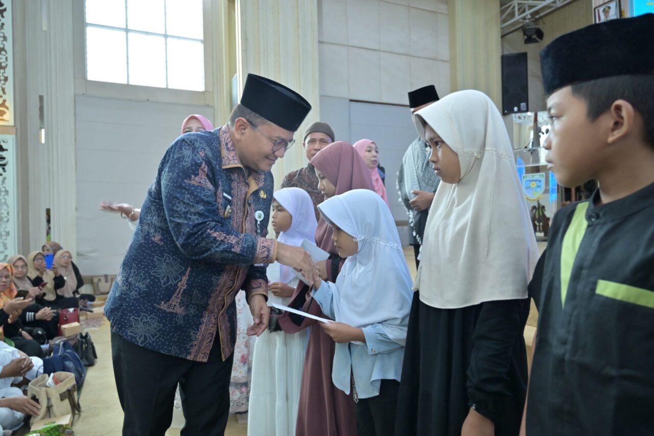 Dalam suasana penuh makna itu, Wali Kota Maulana menyerahkan santunan kepada 105 anak yatim, yang secara simbolis diberikan kepada lima perwakilan.