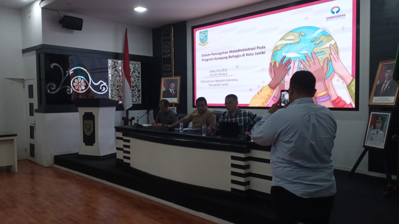 Melalui Focus Group Discussion (FGD) bertajuk “Deteksi Potensi Maladministrasi pada Program Kampung Bahagia Kota Jambi”, Ombudsman memastikan program ini berjalan sesuai asas transparansi, akuntabilitas, partisipasi, dan regulasi. FGD yang digelar Jumat (22/8/2025) di Kantor Wali Kota Jambi diikuti oleh koordinator, fasilitator, kelompok kerja (Pokja) Kampung Bahagia, serta jajaran DPMPPA dan Bappeda Kota Jambi.