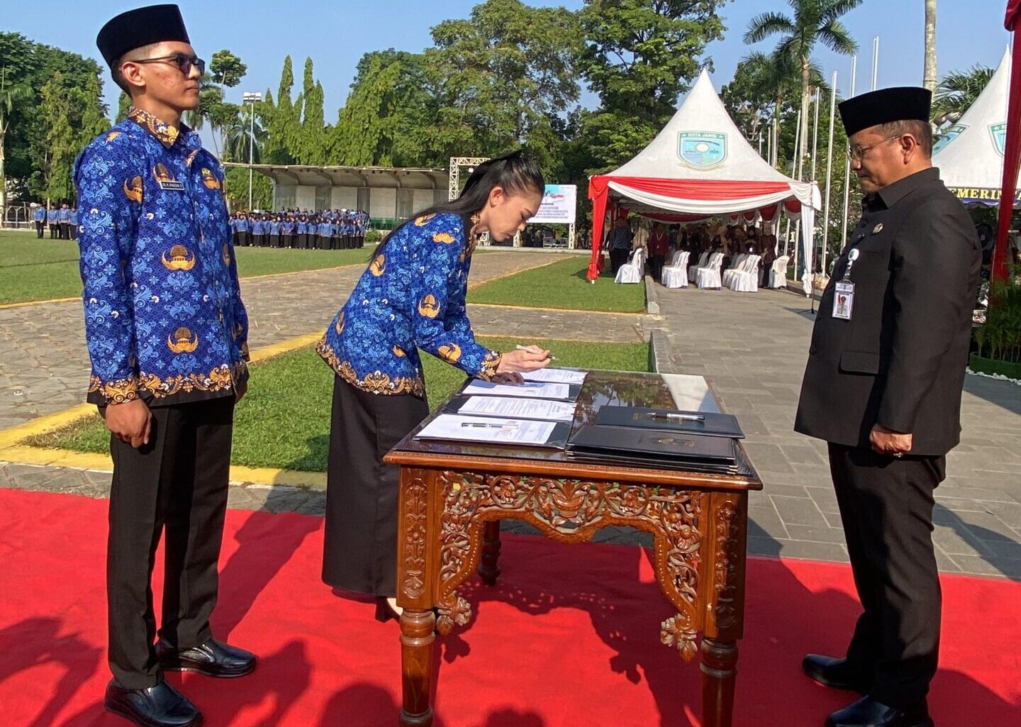 Komdigi.co, Kota Jambi – Wali Kota Jambi, Dr. dr. H. Maulana, M.K.M., menyampaikan pidato yang penuh semangat dalam sebuah acara penyambutan Pegawai Pemerintah dengan Perjanjian Kerja (P3K) dan Calon Pegawai Negeri Sipil (CPNS). Acara yang berlangsung di bawah tenda berhiaskan nuansa merah putih tersebut menjadi momen penegasan komitmen Pemerintah Kota Jambi dalam mengangkat status tenaga honorer.